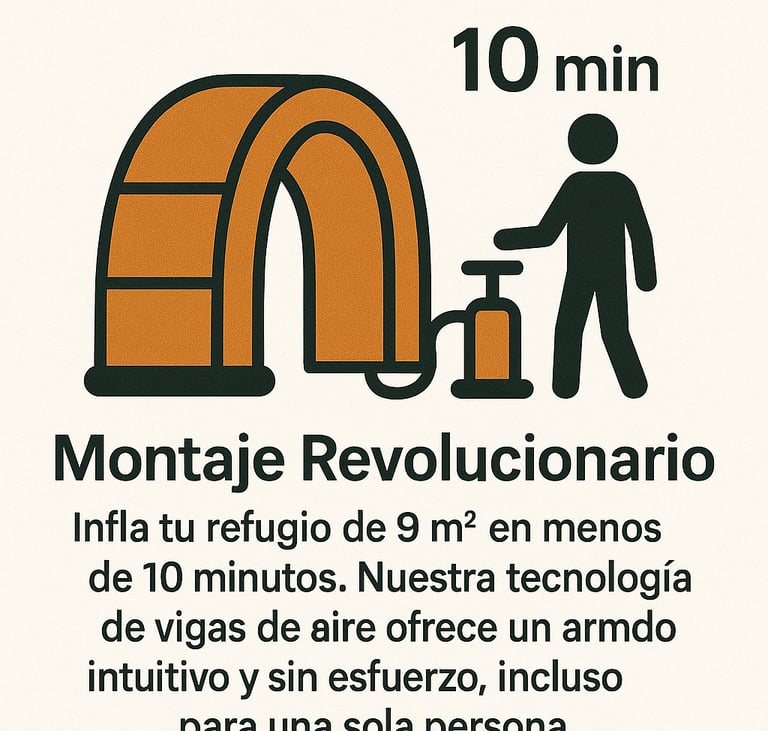 El montaje es sorprendentemente rápido, ¡generalmente alrededor de 5-10 minutos para una persona gracias a su estructura inflable! El desmontaje es igual de sencillo: abrir las válvulas, desinflar y plegar.